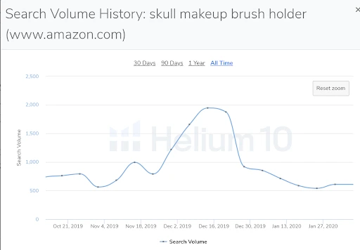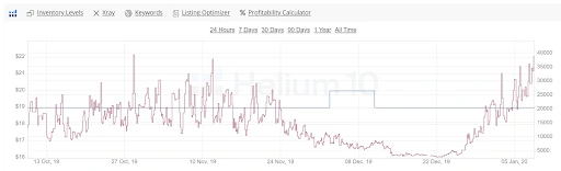 10 Steps to Prepare Your Products for the Holiday Season 12 minute read Published: October 19, 2020 Modified: July 5, 2022 Share: URL copied Trusted by 4M+ Businesses Scale your brand profitably across Amazon and TikTok Get Diamond Plan Table of Contents 1) How to Project Demand During the Holidays for Your ProductMake Sure and Validate in Different Ways2) Forecast Your Inventory3) Optimize for Holiday Related Keywords4) Adjust Your ACOS Targets for Increases Over the Holidays 5) Create Holiday-Specific Short Term Campaigns6) Enable Dynamic Up and Down Bidding7) Put Coupons to Work8) Consider Increasing Your PPC Bids and Budget9) Employ Sponsored Display Ads10) Start Preparing for Holidays of 2021These 10 Steps Help You Prepare for Long Term Success on Amazon Achieve More Results in Less Time With Helium 10 Sign Up For Free Trusted by 4M+ Businesses Scale your brand profitably across Amazon and TikTok Get Diamond Plan 10 Tips for Amazon Sellers this Holiday Season Part of my mission in life lately has been to try to clear up misconceptions that persist in the Amazon ecosystem. One of the most dangerous to Amazon sellers is the notion that Amazon is a “set it and forget it” process. After launching your product, you just kick back on the beaches of Aruba and rake in the profits. Unfortunately, that’s far from the truth. Your success on Amazon is directly related not just to what you do for your launch, but also what you do AFTER the launch. I’m not just talking about a short period of time either, but for the LIFE of your product. This is never more critical than during the holiday season. In this article I will outline 10 steps you need to take to make sure that you are not leaving money on the table. 1) How to Project Demand During the Holidays for Your Product It does not take a rocket scientist to deduce that if you are selling Christmas tree lights or jack-o-lanterns, demand and sales for those products will skyrocket during Christmas, and Halloween respectively. However, what if you have a (seemingly) holiday-neutral product? Your sales still could go up and down around the holiday season. Here is a way to find out. Let’s consider a product that I have seen “Frequently Bought Together” with our Project X Coffin Shelf, a Skull Makeup Brush Holder. What happens to demand for this product during the Christmas shopping season? There are two ways we can check this. First, we could examine the competition who are in the space, and take a look at their sales. Here is a product that was selling in this niche last year. I’ll scroll down to see the BSR history chart from the Helium 10 Chrome Extension. Basically, the higher the BSR on Amazon, the lower the amount of sales. The lower the BSR number, the higher the sales. What else do you notice here? It’s easy to see that nearing Black Friday, sales start to pick up for this product. It continues to increase all the way through Christmas. Then, sales dramatically drop right after that and on into January. This gives me some insight into the demand for this product. Make Sure and Validate in Different Ways But, I like validating data multiple ways. So, the next step I am going to take is to check the main keyword for this product. Using Cerebro, I can see that one of the main keywords for this product that is driving its sales now would probably be “skull makeup brush holder.” It scores over 1000 in search volume, and the last time Helium 10 checked, it was page one, position 2 in the search results. Now, if I click that chart button next to the search volume, I can check the historical search volume of that keyword. I’m looking to see if during the Christmas season, there is any increased demand on the keyword side that might be driving the increased sales we saw on this product. BOOM goes the dynamite. Take a look at that curve. Last year, in the month leading up to the holiday season, monthly searches averaged around 500-600 a month. However, coming up on Black Friday and all the way to Christmas, we see that searches for this product skyrocketed to 1500-2000 per month! It seems that there are a lot of people out there with friends who are into gothic decor and were looking for a product just like this to purchase for them. Now, I have confirmation that I need to prepare for an increase in sales during the holidays for this product, even though it doesn’t necessarily have anything to do directly with Christmas. 2) Forecast Your Inventory As an Amazon seller, one of the worst things you could do is not have enough inventory on hand for the holiday season. Let’s use our Project X Coffin Shelf for example. If I were to run out of stock from December 1- December 20, I could potentially lose thousands of dollars of sales. This loss is permanent! I do not make those sales back. If someone searches “coffin shelf,” and does not see our product there, they’re not going to think to themselves, “Hmmm…I don’t see the Project X Coffin Shelf….I’ll just wait until after Christmas and it’s back in stock to buy it for a gift.” That would never happen. What would the customer do? They would simply buy a competitor’s product. For me, those sales are gone. Conversely, let’s use the makeup brush holder example above. What if I didn’t pay attention to that steep drop off in sales that happened after Christmas? That could easily result in my over ordering, thinking that higher sales would continue on into the near year. In that case, I would be overstocked, and have to pay storage charges to Amazon or to my 3PL Warehouse. I also would needlessly have my money tied up in products that aren’t even selling. This is why forecasting your inventory is crucial during the holidays. You can use spreadsheets and your own formulas to do this, or if you already have Helium 10, use our new Inventory Management solution in order to forecast demand and make sure you do not run out at the worst possible time. 3) Optimize for