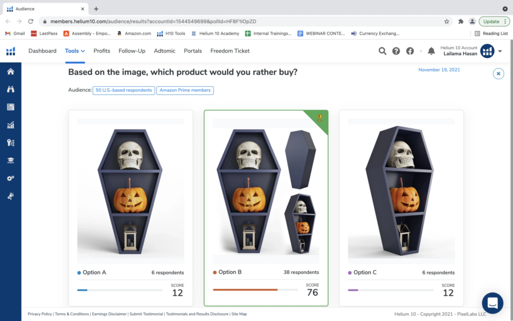 Can 3D Rendered Product Images Boost Your Conversion Rate On Amazon? (We Put It To The Test!) 5 minute read Published: February 16, 2022 Share: URL copied Trusted by 4M+ Businesses Scale your brand profitably across Amazon and TikTok Get Diamond Plan Table of Contents Case Study ResultsHow Did We Run The Audience Poll And What Criterion Did We Use?Now For The Fun Part! Achieve More Results in Less Time With Helium 10 Sign Up For Free Trusted by 4M+ Businesses Scale your brand profitably across Amazon and TikTok Get Diamond Plan If you missed Part 1, catch up here. We covered all the basics regarding 3D product renders, where to start, and which products are best suited for the “3D treatment.” Now it’s time to put what we know to the test! Case Study Results First, we ran an Audience poll (using the Helium 10 split-testing tool, Audience) on the three variations of the the main image that Fade Visuals created for us. Our results displayed a clear winner among the three; Option B came out winning with a score of 76, compared to 12 for the other two options. Here is a snapshot of what the voters had to say about the different options and why they preferred one over the other. First, we wanted to see if having this new main image would increase our page views. We were hoping that the better-looking image may result in more visits to our listing. Before the image change, our average page views per day was 53. After the image change, the average page views went up to 62, representing a 17% increase! The next thing we wanted to do was see if we could increase our conversion rate with more attractive secondary images, so we changed the rest of the images as well. Before we made the change, the Unit Session Percentage was 15.17%. After changing the images, the Unit Session Percentage went up to 18.26%. Now, you might be thinking… is 3% even worth anything? Let’s do the math. Let’s say you only averaged 100 sessions a day. That means in 6 months, you would have 18,250 sessions. 15.17% conversion rate would result in 2,768 units of sales. If your product retails for $30, that would be about $83,000 in revenue. But, what if your conversion rate was 18.26%? You’d now get 3,332 units of sales representing $100,000 dollars worth of sales! Just a few percentage points can represent large amounts of money over time. How Did We Run The Audience Poll And What Criterion Did We Use? The first step would be to go to www.helium10.com, sign in to your account to get access to our Audience tool, and click “Create Poll”. Next, I used the poll builder so that I don’t have to worry about creating my own poll from scratch. This is especially helpful if it’s your first time using this tool and you are unsure of what a poll should look like! It’s a great way to learn in order to customize your polls in the future. Now I want to know, which of the three variations of main images that Fade Visuals created for us, would my audience like the most, and would ultimately give me the most impressions on my listing? So I choose the main image option here as shown below. As you can see, Audience generated pre-made questions in the poll. I will choose the one that is most relevant to our test: “Based on the image, which product would you rather buy?” Meaning, if the same product was being sold by three different sellers and each seller had one picture each, which seller would get the most sales? After everything is uploaded, Audience will give me the total price for the transaction and I will then hit “Proceed to checkout”. I was only given the option of “Ranked” so I will click on that option and click “next step” to move on. Now For The Fun Part! This step allows you to choose different traits to filter out your demographic and give you focused results. This is a great option if you are running multiple polls and have a good data set on your demographic. One way of getting data on your demographic to run such polls would be to use the Brand Analytics tool in Seller Central. This tool will be available to you if you are brand registered. This is great for products that are, for instance, unisex. You may want to know which images appeal more to your female and male audiences and want to include one image to target each demographic. For this poll, I chose Prime members as my filter. The next step is to choose an audience size. For our example, I went with 50, however you can choose any number you wish. Remember – the bigger the sample size the more informative the data, is so feel free to choose a higher number. The next step is to choose different traits. Because my poll was not as complex, I went for the free traits that Audience has made available to me. For those of you who are running more complex and focused polls, you may want to select from the 40+ traits, habits, and usage options available to you. This brings us to our very last step, which is confirming that all data points have been input correctly. Now we can complete the transaction! You will have to wait for about 2 to 4 hours to get the results back. Check your results and make the appropriate changes to your listing! We had a great time experimenting with 3D rendered images for our listing. Since Project X aired on YouTube, we have had the same main and secondary images, so it was past time to give our listing a refresh. It’s really quite amazing how realistic 3D images are, and how, in this case, they resulted in an increase in our page views and conversion rate. There is absolutely nothing wrong with traditional product photography. But for your next or existing product, you now have another option to think about for your listing images! Thanks again to Anthony for the help on this project, along with Fade Visuals! Published in: BlogListing CreationListing Optimization Share: URL copied Share: Published in: BlogListing CreationListing Optimization Thought Leadership, Tips, and Tricks Never miss insights into the Amazo