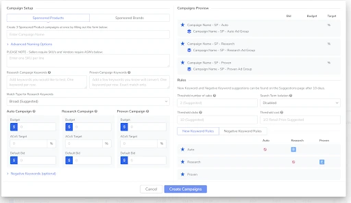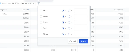 How I Manage 150 PPC Campaigns in Just 2 Hours a Week 10 minute read Published: December 7, 2020 Modified: January 9, 2023 Share: URL copied Trusted by 4M+ Businesses Scale your brand profitably across Amazon and TikTok Get Diamond Plan Table of Contents 5 Ways that ADS Speeds Up Your PPC OptimizationSearch Term Report View (ADS) vs. Downloading Search Term Excel File (Seller Central)Adding Negative Keywords to CampaignsUpdating Keyword Bids to Achieve Target ACoSCreating Campaigns in ADS vs. Seller CentralComparing TACoS and ACoS MetricsTime Equals Money Achieve More Results in Less Time With Helium 10 Sign Up For Free Trusted by 4M+ Businesses Scale your brand profitably across Amazon and TikTok Get Diamond Plan 2020 has been a huge challenge for most of the world’s population. For every step forward, it sometimes seems that there are two steps back. It’s this feeling that makes me want to focus my attention on the positive things that DO happen. One of those positive things that has happened for me is having the time and bandwidth to fully dive into PPC management. As I’ve said in my previous podcasts, blogs, and livestreams, in my time as a consultant for Amazon sellers before my Helium 10 days, PPC was something I had very little experience with. 5 Ways that ADS Speeds Up Your PPC Optimization For the 400 products I launched in those days, I did not manage one PPC campaign. I left that chore to the others I worked with, or to outside companies. PPC was simply too overwhelming for me to have to worry about. It seemed too daunting of a task to learn how to do it on my own, let alone find the time to manage it. Perhaps some of you feel the same. All that changed in 2020 for me. Once the beta version of ADS from Helium 10 was released, I decided that it was time to learn the ropes of Amazon Sponsored ads. Particularly since 2020 has been the year of case studies for me as well, namely Project X, and Project 5K. Helium 10 offers an in-depth Amazon PPC tool, try it out! Fast forward to the present time where I am fully managing and optimizing 150 PPC campaigns with thousands of dollars of monthly spend, requiring only 1-2 hours a week only. That’s how good Helium 10’s ADS is!Helium 10’s Bradley Sutton That might seem mind boggling to some of you, so in this article, I am going to go over the top 5 ways that ADS helps me save precious time, compared to managing PPC the traditional way in Seller Central. Search Term Report View (ADS) vs. Downloading Search Term Excel File (Seller Central) Why is it important to see your search terms? Because, when you’re talking about PPC, that’s the name of the game. You need to be able to identify the keywords that are making money for you and which ones are losing money. It’s also important to compare the time frame as well. Looking at the last week versus the last month helps you to identify trends and fine tune your research. How would you do that in Seller Central? Your steps would be: Specify the campaign type that you’d like to download the search term report for, then generate a report for each of the time frames you are interested in. Run the report.Download the report.Open in Microsoft Excel. Once in Excel, set up the filters so that you can sort by what you have determined to be the preferred results. Do all of the above AGAIN for any other time frame (ex. 30 days).Create pivot tables to be able to compare the different time periods. For advanced sellers, the process would be even more involved. To do this for Project X and its 25 plus campaigns would take hours. Here’s how it works in ADS to do the same thing: Go to the search terms tab under Analytics. Ensure that you have another tab open with the other time frame. (For example, your two tabs might be 7 days and 30 days).With one click you can sort metrics such as ACOS, ad spend, clicks, and more. With just a couple more clicks you can sort through the in-depth metrics of your different campaigns. What would take me hours in Seller Central takes a few minutes in ADS! How cool is that! Pretty cool I think. Adding Negative Keywords to Campaigns You might be wondering what exactly is a negative keyword. The implementation of negative keywords refers to the process of putting search terms in your campaigns as a negative match so that Amazon stops showing your ad for those keywords. Many of those might have been discovered from the above exercise after reviewing your reports. Let’s imagine that after doing your research in Seller Central, you have your list of keywords. What’s the process to add it in Seller Central as a negative match? Find the specific campaign where you want to negative match. Click through to the negative targeting tab within the campaign. Select add negative keywords, then paste the keywords you want to negative match. Repeat this process 10-20 times for each of the campaigns that you have. How do you add negative keywords to an ADS campaign? If you are working with the same search term report I mentioned in the example above, all you have to do is select the “minus” button next to the keyword that is reflecting negative metrics, then each campaign in which that search term appears will pop up, and you can easily click the ones you want to negative match. THAT’S IT! You think that’s easy? It gets even easier. If you want Helium 10 to follow a set of rules that you’ve designed for negative matching keywords (For example; 10 clicks without a sale or spend X amount of dollars without a sale), Helium 10 will actually AUTOMATE the process of negative matching these search terms without you having to lift a finger! Updating Keyword Bids to Achieve Target ACoS What is your target ACoS? 15%, 25%, 35%? Regardless of the number, a big part of PPC optimization is adjusting your bids to help you get to your goal. If you are getting 40% ACoS on a search term with a bid of $1, but your target ACoS is 30%, what do you need to do? You need to lower the bid