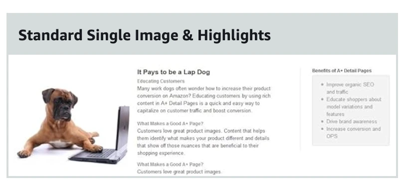 How to Create Amazon A+ Content 14 minute read Published: December 5, 2023 Modified: January 8, 2024 Share: URL copied Trusted by 4M+ Businesses Scale your brand profitably across Amazon and TikTok Get Diamond Plan Table of Contents IntroductionWhat Is Amazon A+ Content?Where Does A+ Content Appear on Amazon?What Does Amazon A+ Content Look Like?What Is the Purpose of A+ Content?What Are the Benefits of A+ Content on Amazon?Does Amazon A+ Content Affect SEO?Differences Between Amazon A+ & Amazon Premium A+ ContentWho Can Create Amazon A+ Content?Is A+ Content on Amazon Free?Is A+ Content on Amazon Worth It?What Are the Requirements/Guidelines for Amazon A+ Content?What Are the Restrictions for Creating A+ Content?Where Do You Add A+ Content in Amazon Seller Central?Tips for Creating Great A+ ContentHighlight Product Features and BenefitsTell Your Brand StoryReduce Returns and Negative ReviewsAnswer Common Customer Questions on the A+ ContentHow to A/B Test Amazon A+ ContentConclusion Achieve More Results in Less Time With Helium 10 Sign Up For Free Trusted by 4M+ Businesses Scale your brand profitably across Amazon and TikTok Get Diamond Plan Introduction Imagine scrolling through a sea of similar products. What makes a product stand out? It’s the story behind it – the narrative that breathes life and personality into a brand, elevating it from a mere commodity to a distinctive entity with purpose. This narrative has the power to win over customers in a digital world that often feels impersonal. With tools like Amazon’s A+ Content you can achieve just that. What Is Amazon A+ Content? A+ Content, previously known as Enhanced Brand Content (EBC), is an advanced feature within Amazon, that allows sellers to enrich their product descriptions with up to seven modules that include compelling text, high-quality images, banners, and much more. It is premium content designed to provide a more immersive shopping experience for customers, allowing them to make informed purchasing decisions. According to Amazon, leveraging A+ Content can potentially boost sales by up to 5.6%. This valuable tool is available for registered brand owners completely free of cost. Where Does A+ Content Appear on Amazon? A+ Content is prominently displayed on the product detail pages, giving sellers the opportunity to engage customers at a deeper level. It appears in the product description section, seamlessly integrated into the product listing. This strategic placement ensures that potential customers encounter the enhanced product description while exploring the details of a particular product. Here is what it looks like on the product detail page. What Does Amazon A+ Content Look Like? Amazon A+ Content typically includes a combination of rich media elements such as banner-like images, quadrant-style images, comparison charts, and other multimedia elements. This feature allows sellers to upload up to 7 different modules in their product descriptions. Every seller has the option of choosing from a total of 17 unique modules. This means there is lots of room for customization and that as a brand you can really elevate your listing page to stand out from your competition. Here are what the 17 modules available to sellers with Basic A+ Content look like: Standard Company Logo Standard Comparison Chart Standard Four Image & Text Standard Four Image/Text Quadrant Standard Image & Dark Text Overlay Standard Image & Light Text Overlay Standard Image Header With Text Standard Multiple Image Module A Standard Product Description Text Standard Single Image & Highlights Standard Single Image & Sidebar Standard Single Image & Specs Detail Standard Single Left Image Standard Single Right Image Standard Technical Specifications Standard Text Standard Three Images & Text What Is the Purpose of A+ Content? Now that we have an idea of what each module looks like, let’s understand the primary purpose of A+ Content. It is to provide customers with a comprehensive understanding of the product, going beyond the basic information available in a standard product listing, and to differentiate products and brands, fostering a stronger connection between sellers and customers. By offering a more immersive and informative shopping experience, sellers can increase customer trust, reduce returns, and ultimately boost sales. A+ Content serves as a visual storyteller, allowing brands to communicate their unique value proposition effectively. What Are the Benefits of A+ Content on Amazon? Enhanced Product Presentation: A+ Content enables sellers to showcase their products with enhanced product descriptions that are visually appealing and information-rich. Improved Conversion Rates: By providing detailed information and addressing potential customer concerns, A+ Content can contribute to higher conversion rates as shoppers make more informed purchasing decisions. According to Amazon, leveraging A+ Content can potentially boost sales by up to 5.6%. Brand Building: A+ Content allows emerging brand owners to establish and reinforce their brand identity, fostering brand loyalty and recognition among customers. Reduced Returns: Clear and comprehensive product information can help set accurate expectations, reducing the likelihood of returns due to misunderstandings or misaligned expectations. Less Distractions: A+ Content guarantees taking up a significant amount of real estate on a listing talking about the sellers brand only, reducing all the visual noise created by ads of multiple brands. Does Amazon A+ Content Affect SEO? While A+ Content is primarily designed to enhance the customer experience, there is evidence to suggest that it can indirectly impact SEO. By utilizing A+ Content, sellers may experience an increase in conversion rates. The logic is straightforward – higher conversions lead to increased sales, and ultimately, improved rankings. The Amazon search engine tends to reward high-converting listings by boosting their ranking. Diffe