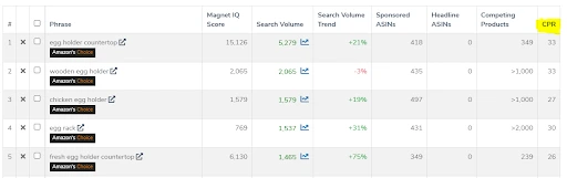 To find a general number based on an average product, you can use the column “CPR” in the Helium 10 tools Magnet or Cerebro