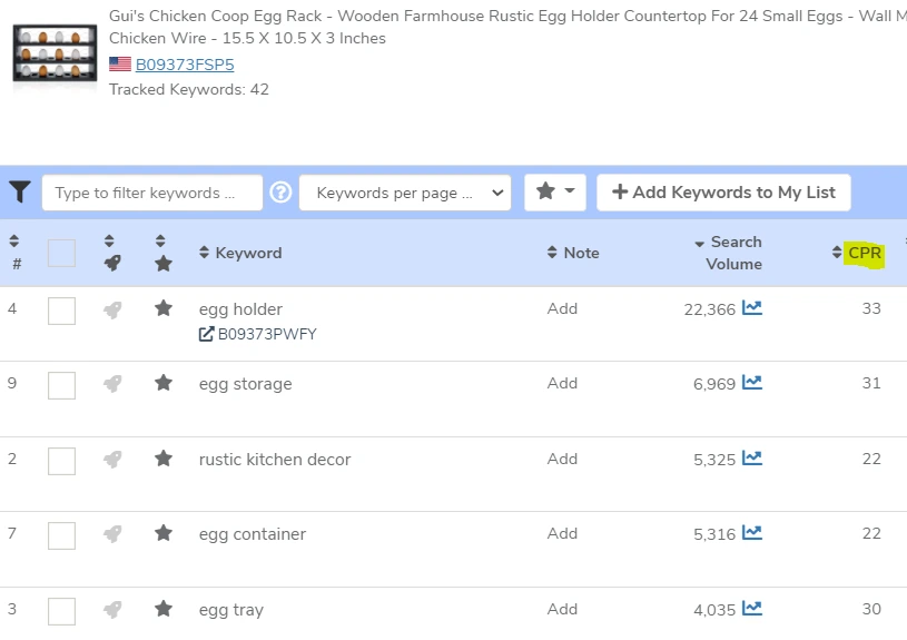 To find a more personalized number based on a specific ASIN and its characteristics (age of listing, if it has the target keyword in the title, etc), add the product and keyword into Helium 10’s Amazon keyword ranking tool, and you will get a customized “dynamic” CPR number to use.