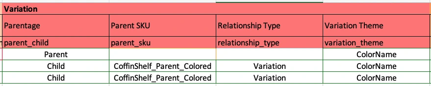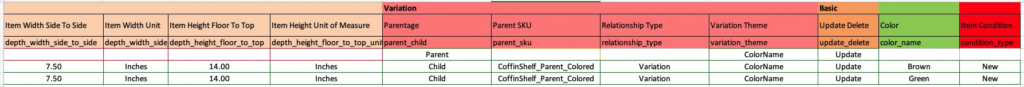Creating Amazon Variations From Scratch 8 minute read Published: February 23, 2022 Modified: February 28, 2023 Share: URL copied Trusted by 4M+ Businesses Scale your brand profitably across Amazon and TikTok Get Diamond Plan Table of Contents Frequently Asked Questions Achieve More Results in Less Time With Helium 10 Sign Up For Free Trusted by 4M+ Businesses Scale your brand profitably across Amazon and TikTok Get Diamond Plan Before creating a variation, it’s essential to understand a few key things. Variations consist of Parent ASINs and Child ASINs. A Parent ASIN is what holds the variation together and mainly exists in the back-end of Amazon. A Child ASIN is what is being placed into the variation with other Child ASINs and will often live in different types of variations by being differentiated through color, size, style name, and more! Stand-alone product listings become Child ASINs once they are placed into a variation. Simultaneously, Parent ASINs are created as you make your variation, so no extra effort is needed when uploading a new variation via Flat Files.We highly recommend that you back up the content of each listing within our Listing Builder tool for any product listings you plan to place into a variation. Listing Builder can be found via the Listing Optimization tab in Helium 10. From there, you’ll click on “Add Listing.” Choose the “Create from scratch” and click on the “Get Started” button. Copy and paste any of your ASINs that you plan to place into a variation – you can only do one at a time. Once you paste your ASIN in and click on “Start Building,” it will populate into your Listing Builder as a “Draft” that you can refer back to, just in case any issues arise once you upload your Flat File. Now, to create a variation from scratch and merge stand-alone listings into a variation, you must first know what categories your product falls under. As a reminder, all of the product listings that you want to combine into a variation must be in the same category. To determine what the categories are for your product listings, you can double-check by clicking on the Product Name from within your Seller Central’s Manage Inventory tab. Once you are on the product listing’s page, you will see the categories your product is aligned with. Once you have verified that all of your listings are in the same category, you will head to your Add Products via Upload tab within your Inventory tab in Amazon Seller Central. You will be within the “Download an Inventory File” tab, and from there, you can search your respective category to find the Inventory File Template you will need to use. For this example, we will search “Floating Shelves.” Double-check that the category matches your products’ category, and once you have verified that it matches, you will click on “Select.” Make sure your marketplace is only for Amazon.com (unless you wish to upload a variation in your other marketplaces as well). Leave your template language in English and have your template mode as “Advanced.” You can then click on “Generate Template,” and you will download a file onto your computer. The downloaded file will serve as the template to create and upload your variation. When you open the file, you will see a lot of tabs in the file. Be sure to unprotect the “Template” tab so that you can edit it freely. Enter in your product type for your Parent SKU and any number of Child SKUs you may have. Your file should have a dropdown option that you can select to fill each cell. For this specific file and example, ours is a “shelf.” From there, you will have to make up an SKU for your Parent ASIN on the spot, so enter in whatever makes sense for you. For your child ASINs, copy and paste the exact SKU from Amazon Seller Central that matches with whatever ASINs you want to combine into a variation. You will also notice that there are some cells outlined in red. You will have to fill in all of the information for the cells outlined in red for all of the rows that contain your Child SKUs. For the Parent SKU, you only need to enter information within the cells outlined in red for the following attributes: Product TypeSeller SKUBrand Name (Brand name has to match across all Parent and Child SKUs)Product NameManufacturer For the Child SKUs, make sure that for any required information (cells outlined in red) you are entering in, you are copying the exact information directly from Amazon Seller Central and from the back-end of each listing you’re placing into a variation. Once you have all of the information filled in the respective cells outlined in red, you can now move on to working in the Variation section of the Excel sheet. In the “Parentage” column, you will note which of your SKUs will act as the Parent and as the Child. You will copy and paste the same Parent SKU you created into the “Parent SKU” column and only input it for the Child rows. You will also dictate the relationship within the ‘Relationship Type” column, only for the Child rows. In the “Variation Theme” column, you will apply to Parent & Child rows whatever selection you choose. It should look similar to this. Keep in mind that for whatever theme option you choose for your variation, you will have to make sure it is relevant to your variation and its products and make sure to input information for the specific attributes related to the theme within the “Discovery” section. (Ex: Inputting information about the color within the “ColorName” column since this variation will be a color variation) After you finish with the variation part, you will go over to the “Basic” section and put “Update” in the “Update Delete” column for all of your rows. Lastly, you will go over to your “Offer” section and note the item condition for all of your Child rows within the “Item Condition” column. Now you’re almost there! All that’s left is the delete all of the colu