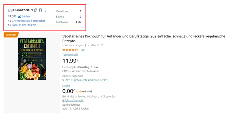 Der uns hier angezeigte Bestsellerrang hilft uns bereits grob einzuschätzen, wie hoch die Produkte nachgefragt werden. Das Buch, welches in der Bücherkategorie am besten verkauft wird, rankt auf #1. Das zweitnachgefragteste Buch rankt auf #2 und das 4.681 meistnachgefragteste Buch rankt auf #4681. Je niedriger die Zahl, desto mehr verkauft sich also das Buch.