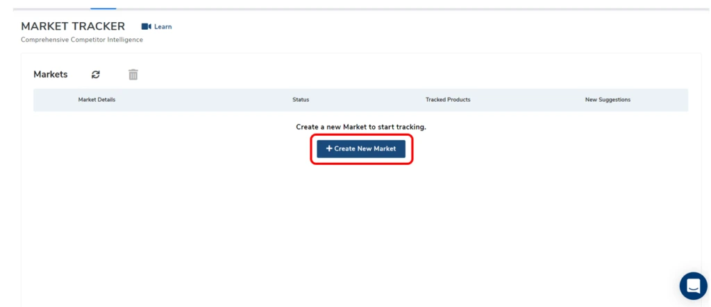 Im ersten Schritt musst du im Helium 10 Market-Tracker einen neuen Markt anlegen. Dafür klickst du auf den Button „Create New Market“.