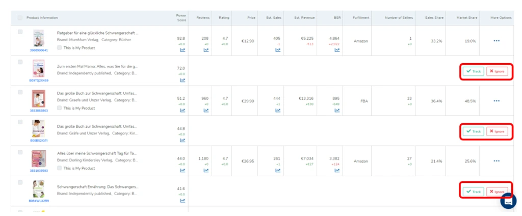 Wie sich der Helium 10 Market-Tracker im Detail anwenden lässt, zeigen wir dir nun anhand der Beispiel-Nische „Schwangerschaftsbücher“.