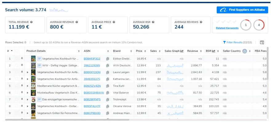 Leider kannst du hier den Markt nicht auf eine bestimmte Kategorie bei beispielsweise „Bücher“ eingrenzen. Wir nutzen deshalb für unsere Markteingrenzung folgende Keywords: