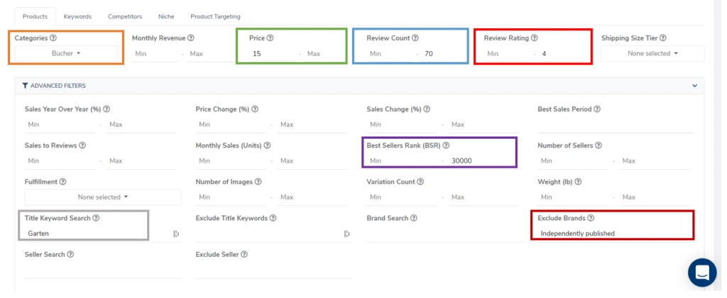 • und einen Bestsellerrang von max. 30.000 haben – so stellen wir sicher, dass trotzdem genug Nachfrage auf den Produkten ist