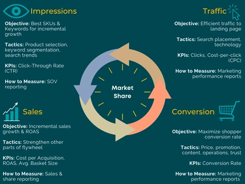 Expanding Your Amazon Game to Walmart 5 minute read Published: March 17, 2022 Share: URL copied Trusted by 4M+ Businesses Scale your brand profitably across Amazon and TikTok Get Diamond Plan Table of Contents Why do customers love Walmart?Retailer Platform Similarities:Marketplace BasicsRetail Media (Advertising) BasicsGet Ready for Walmart Advertising – Cold-Start1. Determine your business objective, advertising goal, and activation plan.2. Determine Budget & Allocation3. Pre-Launch Playbook4. Launch! Achieve More Results in Less Time With Helium 10 Sign Up For Free Trusted by 4M+ Businesses Scale your brand profitably across Amazon and TikTok Get Diamond Plan The buzz around the Walmart platform is not just hype or a hot new topic for industry experts to chatter about. The growth over the past few years has been consistently impressive and Walmart appears to be exciting and attracting customers, which attracts suppliers & sellers. Why do customers love Walmart? ConvenienceSelection: Broad range of essential and discretionary categoriesFast shipping & delivery (without cost of membership)Flexible returns (in store or online)Mobile scan and goFree curbside pickupValue for – Budget conscious shoppers“Save Money. Live Better”Discounts on prescriptionsDiscounts on gasoline Walmart.com boasts 120 million unique monthly visitors, and as their e-commerce presence continues to grow in the coming years, vendors & sellers need to consider their strategy on the platform. Being the world’s largest omnichannel retailer, Walmart offers its sellers great features & benefits; No monthly fees – only pay referral fees when products sellWalmart Fulfilment Services – Drop-ship your orders if you can or leverage WFSPartner programs & resources to help get started on the marketplacePick-up and delivery business will continue to grow in 2022New services such as Walmart’s GoLocal quickly gaining popularityHeavily investing in state-of-the-art ad technology – marketing levers for sellers to increase salesLess competition (less sellers) compared to Amazon If you are interested in getting started on Walmart then you are likely already doing business on Amazon and/or other marketplaces. Let’s take a crash course on Amazon’s success so we can fully examine how this opportunity benefits sellers & suppliers making the jump to Walmart. Amazon is the most prominent eCommerce retailer in the world and boasts the most mature & sophisticated retail media network. The force of the Amazon flywheel/ virtuous cycle appears unstoppable today. The model is a beautiful representation of the marketplace’s cause of rapid growth over the years and a guide for other eRetailers to follow. Walmart is the largest retailer in the US with 11,500 stores. Their brick & mortar flywheel is already humming. Since 2016, Walmart has been committed to growing its share of eCommerce and is building a competitive ad business to support that growth. Accelerating their e-commerce flywheel requires a broader selection of products in the marketplace, coming from a larger pool of sellers. This is a massive opportunity for Amazon sellers who have yet to expand their operations and reach the retailer. 90% of Americans live 10 miles from one of Walmart’s 11,500 stores. As physical stores evolve into hybrid stores with drop-shipping/fulfillment operations for e-commerce, this creates a unique advantage in the efficiency, speed, and reliability of delivery. If you’re succeeding on Amazon and want to expand your distribution, then your next sensible step may be to launch on Walmart. Helium 10 recently launched Project W, a case study for Amazon sellers looking to expand into the Walmart marketplace. Project W is a 12-episode video series illustrating, with real examples, how to take an existing Amazon product and successfully expand into the Walmart.com marketplace. Retailer Platform Similarities: Though there are many differences between the two platforms, it’s important to start with similarities as you get familiar with Walmart.com Marketplace Basics Get setup & sell products Both retailers allow approved sellers to list their products on a marketplace. Providing a broader selection for customers to browse.Both retailers charge a referral fee when products are sold. Cost of doing business on the marketplace.Product performance depends on the demand for the product, and the quality of the listing & offer compared to similar available products.Having a high converting listing is essential for reaching maximum salesExplore our Walmart Retail Readiness Checklist for best practicesCheckout Helium 10’s How to Create a Walmart Listing (9 min) for more detailsCustomer Satisfaction. Keep it simple – don’t disappoint the customer.Product must match the listingFast shipping & deliveryBoth platforms offer fulfillment services Retail Media (Advertising) Basics Drive Traffic & Increase Sales Once your listing is optimized for conversion, increasing the number of shoppers who view your product is the next step to increase sales.Run promotions to increase the visibility of your products, the price decrease will increase the conversion rate, which will improve sales velocity and hopefully generate some reviews.Drive external traffic to your product detail pages.Paid Search (flywheel) – Help customers discover and purchase products that you sell with ads that appear in shopping results and on product pages.Much like the Amazon virtuous flywheel, there is of course a PPC cycle that helps to increase/reinforce organic search rank & keyword relevancy.The number one driver of the flywheel is conversions (paid+organic) for a product against the searched term. Run display media with the retailer, increasing the overall awareness of your products/brands. Get Ready for Walmart Advertising – Cold-Start Once you are set up and running on Walmart you will want to begin increasing the force of your paid search flywheel and see what type of sale