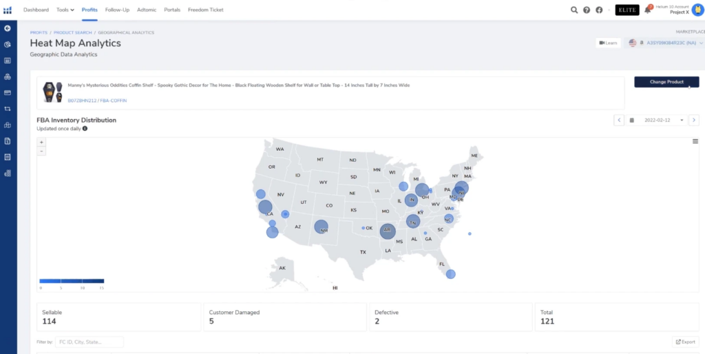 At the top of the Heat Maps tool, you can type in your ASIN or SKU and instantly get a map of the country where your inventory is currently being stored! Currently, Heat Maps is only available for the US.