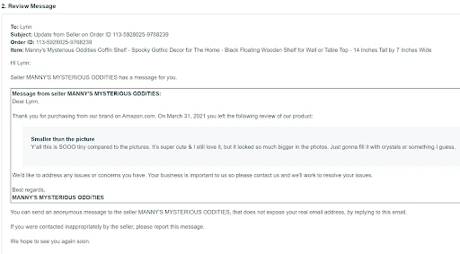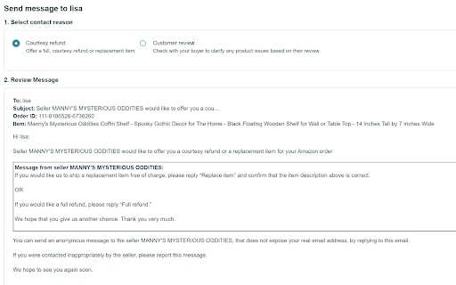 How to Contact Customers Who Left You a Bad Amazon Review 7 minute read Published: May 25, 2022 Modified: January 4, 2024 Share: URL copied Trusted by 4M+ Businesses Scale your brand profitably across Amazon and TikTok Get Diamond Plan Table of Contents A Message from Amazon How to Use This New FeatureWhy Would an Amazon Seller Want to Use this Service? Achieve More Results in Less Time With Helium 10 Sign Up For Free Trusted by 4M+ Businesses Scale your brand profitably across Amazon and TikTok Get Diamond Plan For years, Amazon sellers have asked questions like: “Is it ok if I contact Amazon customers who left me a bad review and maybe offer them a refund?” “How can I find out which customer is the one who left me a bad review?” “How can I contact customers who left me bad reviews on Amazon?” “How can I find the Amazon order ID of the buyer who left me a bad review?” Until now, the answer to these questions was usually, “No,” or “Amazon doesn’t want you doing that, they would probably view that as review manipulation.” People would sometimes come out with hacks on how to backtrace bad reviews via review profiles and such, but this was typically not really recommended, especially for those learning how to get more reviews on Amazon. A Message from Amazon Well, those eagle eyed people checking out their brand dashboard this week might have had their jaws hit the floor when they saw this message from Amazon: “We listened to your feedback!“ “We’ve been tracking feedback from brands related to the Customer Reviews experience. We heard that you love having a way to see all your reviews in one place and that it is nice to be able to filter by star rating and time period. You also shared your frustrations over not being able to directly engage with your customers who left critical reviews.“ “We’re now offering a brand-only benefit that allows you to reach out to buyers who purchased your branded product directly from you, who left critical (1-3 star reviews) via templated emails that allow you to communicate with buyers via buyer-seller messaging.“ “We believe this will build brand trust and help establish stronger relationships between you and your customers.“ Say what? They’re allowing us to have direct contact with customers who left us bad reviews on Amazon? Go ahead….double check your calendar to verify that it’s not April Fools Day. This is for real! How to Use This New Feature Let’s dive into who can use this feature, how to use it, and why you might want to. First of all, this is only for those who have Amazon Brand Registry. If you do, in Amazon Seller Central, go to the Brands Menu, and select “Customer Reviews.” You will then be brought to a page where it clearly says that you can now send direct messages to customers who left you a 1-3 star rating! This is where you’ll be able to check the review on Amazon and what buyer made the review. Now, the first thing to know is that this JUST got released, and there seems to be a few bugs in some accounts. For example, in both the Project X and Project 5K accounts, for some negative reviews, there is no button to contact the buyer. Instead we get a message saying that “You can contact the buyer only when you are the seller for that order.” However, this obviously WAS a product that we were the only seller for, so we had to open a case with Amazon to get that fixed. What SHOULD you see if everything is working? Check out the bad review below. You should see a “contact buyer” button there. Now this is where things start to get interesting. Notice what pops up when you hit that button: Wow. So Amazon is obviously completely fine with you outright offering a full refund or replacement item to the person who left a bad review. In the past most people would have told you that this could be something dangerous. That even if you didn’t ask them to change their review, the fact that you were giving someone a refund or replacement might be implying you are trying to influence them to change their review, and thus something Amazon frowns upon. The fact that this is now the first option should put to rest that debate. What shows up when you hit the “courtesy refund” button? A templated message comes up that offers the customer a full refund or replacement. You cannot change the language here. But how many of you never thought you’d see the day, when in response to a negative review, Amazon WANTED you to say something that said “we hope that you give us another chance?” If you would have asked me two weeks ago if that would be ok to say to someone who left you a bad review, I absolutely would have told you that I would not recommend that since I have seen so many accounts have their buyer/seller messaging privileges suspended for language that seemed less serious. What shows up when you hit the “check with your buyer” option? As you can see, Amazon actually has a full template there that is written out that you can use to contact the buyer. As of this time, you cannot edit this template in any way. You can only send the message or not. One quick thing…did you see what shows at the very top of both of these scenarios? Yup! This shows you the exact order number that resulted in your bad review! This is exactly the thing that people used to come up with when using advanced hacks trying to figure out how to get the order ID. Now Amazon provides it directly to you! These two templates utilize the buyer/seller messaging system of Amazon. As soon as you send the email, you will see it show up in your buyer/seller messaging sent folder: Why Would an Amazon Seller Want to Use this Service? We all know that positive reviews are the backbone to the social proof that will help boost your sales over your competitors. You also never want to forget that good customer service goes a long way. If you can turn a negative experience into a positive one, you never know the kind of ripple 