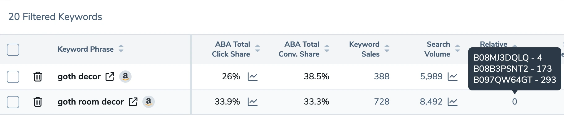 How to Find Opportunity Keywords that Most of Your Competitors Are Missing 3 minute read Published: February 3, 2023 Modified: February 9, 2023 Share: URL copied Trusted by 4M+ Businesses Scale your brand profitably across Amazon and TikTok Get Diamond Plan Table of Contents Finding Keywords with Cerebro Achieve More Results in Less Time With Helium 10 Sign Up For Free Trusted by 4M+ Businesses Scale your brand profitably across Amazon and TikTok Get Diamond Plan Have you ever wondered if there is an easy way to find relevant keywords for your product that your competitors are missing? Finding these opportunity keywords has the potential to bring you more sales. More keywords could potentially bring you A LOT more sales. If you’re interested in getting more sales, keep reading! Usually, when you’re doing keyword research, it’s easier to find the most important keywords for a niche. For example, if you’re selling a coffin shelf you know that the top keyword is “Coffin Shelf.” However, there are a lot of different keywords that top sellers could be getting sales from and sometimes there are only one or two competitors who are ranking for that keyword. If competitors are making sales on these keywords, they are probably very relevant. Finding these hidden keywords is important because like low-hanging fruit, you only have to compete with maybe one or two competitors instead of 10 or more. It will potentially be easier and less expensive to rank for these keywords and you could potentially take the majority of the sales since there is a lot less competition. Finding these keywords used to be difficult but we have made it easy for you with just one click using Helium 10’s Cerebro tool! Finding Keywords with Cerebro The first thing you want to do is find the top sellers and do a reverse ASIN search in Cerebro on all of those ASINs at the same time. To find the top sellers, first, go to Amazon and search the main keyword. Then, pull Helium 10’s X-Ray Chrome Extension and sort by revenue to find the top sellers of that product. Then, check off the top sellers and click “Run Cerebro,” to do a reverse ASIN search in Cerebro. With this method, the ASINs are already copied into Cerebro for you to do the reverse ASIN search. Next, you are going to just click on “Opportunity Keywords,” and Cerebro will automatically fill in the filters for search volume, Competitor Performance, and the Advanced Rank Filters. These filters show keywords where one or (at max) 2 competitors are ranking between spots 1 and 15 for that keyword. You can adjust these filters if you want to see more or fewer results but just this one click should give you lots of great opportunity keywords. Now let’s take a look at some of the results of this search. It looks like “goth room décor,” only has 3 total competitors ranking and only one is ranking below spot 15. So, this means that people are purchasing on this keyword because there are a total of 3 competitors ranking for this keyword, and one is in spot 3 which shows a good amount of sales conversions for that product on this specific keyword. This is a pretty good indicator that this is a relevant keyword that has good potential to produce sales if your product started ranking under this keyword. If you haven’t tried out this easy one-click filter to find some new opportunity keywords, drop what you’re doing right now, and go find those opportunity keywords in Cerebro! Published in: BlogKeyword Research Share: URL copied Share: Published in: BlogKeyword Research Thought Leadership, Tips, and Tricks Never miss insights into the Amazon selling space by signing up for our email list! Subscribe Achieve More Results in Less Time Accelerate the Growth of Your Business, Brand or Agency Maximize your results and drive success faster with Helium 10’s full suite of Amazon and Walmart solutions. Get Started