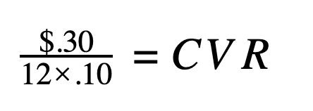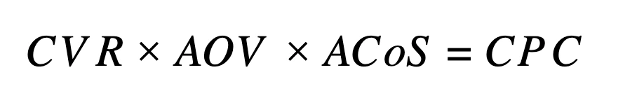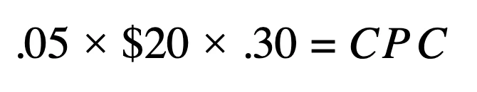 Now they want you to launch one of their new products on Amazon advertising.  They give you the sale price ($20), a good sense of the conversion rate from organic sales (5%) and a new , more realistic, ACoS at 30% based on their existing profit margins.  You want to know what CPC you need to target in order to set your initial bids. For this, we can use the calculation for CPC: