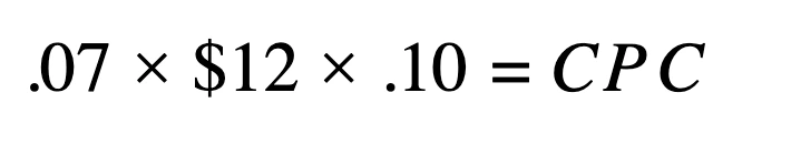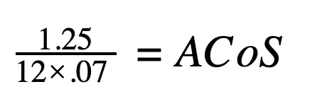 You’re an Amazon agency who just brought on a new client.  The client has gone through 5 agencies before you. They expect a 10% ACoS and won’t accept anything higher.  You’ve just walked through their account and you’ve been given the current metrics. Their conversion rate is currently at 7% and their product sells for an average of $12.00.  They are currently running at $1.25 CPC. Let’s see how realistic their ACoS goal is by calculating their current ACoS first: