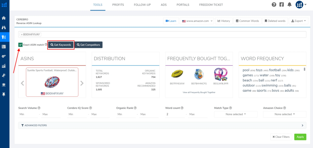 Two Minute Toolbox: Turning Cerebro’s Keyword Search Light into a Laser Beam 4 minute read Published: February 10, 2021 Modified: November 21, 2023 Share: URL copied Trusted by 4M+ Businesses Scale your brand profitably across Amazon and TikTok Get Diamond Plan Table of Contents First, Keyword Research the “Traditional” WayPerforming Keyword Surgery with Cerebro’s “Exact ASIN Match”Know Your Competition Before You Pick Your Product Achieve More Results in Less Time With Helium 10 Sign Up For Free Trusted by 4M+ Businesses Scale your brand profitably across Amazon and TikTok Get Diamond Plan If you have used Helium 10, chances are, you have used Cerebro (it’s our Amazon keyword research darling). Cerebro is our flagship reverse ASIN search tool specifically designed to help you evaluate important keyword data that will ultimately influence your Amazon ranking and product sales. Think of Cerebro like your own personal, self-updating almanac. The historical scores for any keyword on Amazon including estimated monthly search volume, organic rank, and number of competitors… all in a matter of seconds. While the majority of sellers use the “Get Keywords” search button (Cerebro’s primary function), many end up missing out on two helpful features of this remarkable tool. One of these features gives you an instant way to find potential competing products for any family of keywords. The other feature effectively turns your keyword research spotlight into a laser. Today, we’re looking at the “Exact ASIN Match” and “Get Competitors” buttons, found on either side of the “Get Keywords” button. First, Keyword Research the “Traditional” Way Normally, you would use the “Get Keywords” button in Cerebro to discover related keywords for every variation of a given product. Find a product on Amazon with multiple variations (colors, flavors, sizes) and copy its ASIN (You can find a product’s ASIN by scrolling down any product listing to the “Product Information” section). Paste this product ASIN into Cerebro and, WITHOUT checking the “Exact ASIN Match” box, click “Get Keywords.” As you can see, Cerebro gives us a list of related keywords for not only the specific product variation we found, but all other “sibling” variations as well. In this case, 704 organic keywords! Most of the time, these are the results you’d want: a holistic selection of keywords for your product. You may then use Cerebro’s various filters to hone in on specific keywords based on minimum monthly search volume, maximum word count, or Cerebro IQ score. Cerebro IQ score is a custom metric, unique to Cerebro. A keyword’s Cerebro IQ score is the ratio of estimated search volume vs. the number of competing products for that keyword. A high Cerebro IQ score means you are looking at a highly-searched keyword on Amazon with few competitors. Does that sound like opportunity? Running a traditional Cerebro search works great if your potential customers (and therefore, keywords) may not differ much depending on different “flavors” of your product. However, a customer looking for a purple product may require different keywords than a customer looking for a grey product. How are you supposed to get keywords for a specific version of a given product? Performing Keyword Surgery with Cerebro’s “Exact ASIN Match” At Helium 10 we prefer the needles out of your haystacks. This time, let’s run the same search using Cerebro (on the same ASIN), but this time selecting the “Exact ASIN Match” before clicking the “Get Keywords” button. Now, Cerebro displays only the related keywords for the specific product variation (color, flavor, size) you selected. We’ve laser focused our keyword results to just 194 keywords, all related to a product variation, not generally a broad product. Know Your Competition Before You Pick Your Product Want to start conducting competitor research at the keyword level, rather than waiting for them to make themselves known to you after you’ve gone to market? Let’s try the “Get Competitors” search button. Again, copy and paste a product ASIN into Cerebro. However, instead of clicking “Get Keywords,” click “Get Competitors.” As you can see below, Cerebro generates a list of similar, competing products based on related keywords to your initial product. Now you have a clear list of products for your competitor research, and it only took a few seconds. But let’s go a step further. Say you want to compare the keywords of these competing products directly against your own. Click on each competing product you want to compare. As you do so, Cerebro will highlight them. Once you have made your selections, click “close.” Each of these competing ASINs are automatically added to your Cerebro search (along with your initial ASIN). Click “Get Keywords.” You now have a full list of related keywords for your selected products! If you’re looking for a quick way to sneak a peek at your competition without manually searching Amazon and using Helium 10’s Xray (part of our Amazon chrome extension), the “Get Competition” button in Cerebro is the best way to do it. Haven’t had a chance to look at the free Helium 10 Chrome Extension? There’s never been a better time. We recently just added Alibaba.com functionality to completely streamline the way you go about sourcing products moving forward! Published in: BlogKeyword ResearchProduct Research Share: URL copied Share: Published in: BlogKeyword ResearchProduct Research Thought Leadership, Tips, and Tricks Never miss insights into the Amazon selling space by signing up for our email list! Subscribe Achieve More Results in Less Time Accelerate the Growth of Your Business, Brand or Agency Maximize your results and drive success faster with Helium 10’s full suite of Amazon and Walmart solutions. Get Started